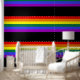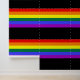 黒いカスタム背景に虹色のLGBTQプライド旗を付けた壁紙。パターンストライプのは、プライドフラグ=赤、オレンジ、黄、緑、青、紫の虹の色で壁紙の上にタイル表示される。