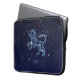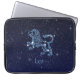 ラップトップスリーブは、深いミッドナイトブルーからブラックに格下げされた星空の背景に対して、星座の星で覆われた柔らかいシルバーブルーのレオのシンボルを特徴とする