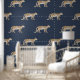 JUMBO SCALE 24インチパターンの繰り返し。濃厚なネイビーブルーバックロースのようなテクスチャーとヴィンテージモダン歩くヒョウ、自然植物性イラストレーション中性天然色。ベッドルームクラシック、オフランスのフ男らしィス、またはライブラリのための英語または優雅さ。大規模および小規模はかりで測な宇宙に複数で使用可能。国際的に認可されたアーティストでデザイナーのオードリー・ジャンヌ・ロバーツ©によるアート。オードリー・ジャンヌのアートワークは、MHSライセンスを通じてライセンスを取得できる。