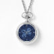 暗い青の星空の背景に対して、星座の星で覆われた柔らかい銀の青でレオのための太陽のサインをフィーチャーする時計
