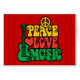 ギターとの平和のデザインを、愛及び音楽、黄色、赤および緑のピースマーク、ハートおよび音符タイプして下さい。