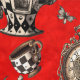 AIがデジタルお洒落アートパターン機能を生み出したWonderlandチェッインスパイアカーのティーカップとティーポットとドラマチックな赤い背景にヴィンテージのポケットの腕時計。アクセントの壁や他のDIYホームデコールプロジェクトに最適!