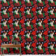 黒を背景に赤と緑を着たベネチアンの仮装のマスクを持つオーバーンの髪の女性