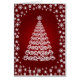 様々な種類の星や赤い背景の白い木のイメージを持つこのクリスマスカードで友人や家族に季節の挨拶を送信し、メッセージの内側は、5月のクリスマスはあなたの家とハートで明るく輝く。