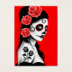 この死んだデザインのインスパイア日は、顔に砂糖スカルのパターンを持つ美しい女性を特色とする。3つのバラが彼女のジェットブラックの髪に現れ、彼女の腕に2つ以上のバラの入れ墨を付けた。少女は横に立ち、頭を少し見る人の方に向けている。彼女の純粋な白い肌は本当に黒い髪とドレスだけでなく、明るい赤の背景に目立つ。このユニークデザインは素晴らし死んだ女性のこの日を表している。