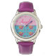 赤ピンクのバラみすぼらしいシックなティール(緑がかった色)アクアフローラフラワーガールズネーム腕時計。私のオリジナルガーデンの水色絵画から設計。