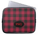 レッドブラックバッファロープレイドチェックモノグラムイニシャル ラップトップスリーブ