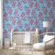 レッドブルー花植物系フローラ線絵柄の壁紙。