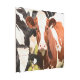 このカラフルメタルウォールアートは、他の白黒のホルスタイン牛と共赤と白に、ホルスタイン乳牛の顔をクローズアップしたイメージを持っている。