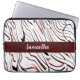 このデザインは、ラップトップスリーブに白い背景を持つ赤ストライプ、白、黒のを備えている