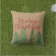 キュートBurlapテキスタイルのテクスチャー書パターンには、書道の手紙と緑の休日の木のキュートフェイクな「メリークリスマス」の引用文文字。屋外の家のデコモダンアのアクセントとファッションアクセサリーの様々なインスパイアに利用可能なポーチ、パティオ、プールデッキやビーチの家の裏庭の居場所のの家、カントリーコテージ、ログキャビン、湖や川のバケーションホーム。