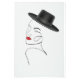 レッドリップラインアート付き黒帽子の女性 メタルプリント
