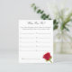 この"Where We?"のブライダルシャワーゲームでエレガントお客様の知識をテストしよう!クラシックの赤いバラのデザインを使用して、このおもしろい活動は、カップルが各写真のどこにいたかを推測するのに挑戦する。正解が最も多い人が勝つ!美しい思い出を再現し、ブライダルシャワーでゲストを楽しませる完璧な方法は、このゲームはあなたのお祝いにインタラクティブパーソナライズされたなtouchを追加する。