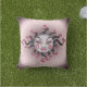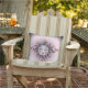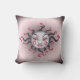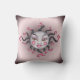 表裏にピンクとダークグレーの背景に黒とピンクの光線を巻き付けたピンクの唇と円形の頬を持つグレー顔の女性太陽を有する屋外織物の装飾枕。