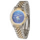 この女性のクラシック腕時計は、2トーン金ゴールドとシルバーで示されている。深い素晴らし海にサメの写真がある。秒針をスイープ。こカスタマイズの時計は買まに見える。