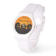オレンジ色の背景を持つブラックカボチャ、スポーティなホワイトシリコンウォッチ