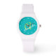 女の子と女のモノグラムの子の腕時計 – おもしろいと派手で清潔で上品な時計パーソナライズされたあなたのギフトのリストにはエレガント、スッとした女の子らしい女の子。ターコイズアクアクラシックティール(緑がかった色)ブルー顔にグレーのハッシュマークのドットを付けて、ライムグリーンのモノグラムとオプションのホワイトスクリプトの名を付けたととフェミニンは読、簡単と一緒に。洗練されたはっきりした伝統的スタイルの女性や女性のエグゼクティブのためのクリックは、背景の色、フォントのサイズ、スタイルや色を変更するカスタマイズために、それを作る。