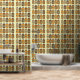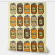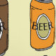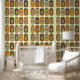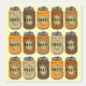 男の洞窟やホームバーのエリアに最適な壁紙。白いクリームの背景に、茶色とオレンジの微妙な色合いのビール缶のポパートスタイルの列のレトロなデザインを特徴とする
