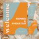 グルービー レトロ ウェディング70年代カラフルモダンボーホヴィンテージ大胆なタイポグラフィーカジュアルファンキーダスティーブルー オレンジ ピンク
