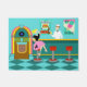 このレトロのソーダ・ファウンテンのドア・マットと特別な何かに役立って下さい。 最小主義の芸術、漫画のスケッチの設計特微町の最もクールな点のインテリア。 それは安っぽい栄光すべての50年代のソーダ・ファウンテン、です! 水の壁の背景幕に対して、家の専門を広告している私達はポスターを見ることができます。 1枚のポスターは15セントの安売り価格のための破裂音のハンバーガーそしてボトルを示します。 他のポスターはのための砂糖の円錐形でアイスクリームの2個のスコップにただの5セントを示します。 価格によってこれらをのそれあなたのウエストラインを見ること困難でなければなりません好んで下さい! 最も有能なソーダ急な動きは黄色いアクセントのティール(緑がかった色)のカウンターに人を配置しています。 強い仕事倫理の若者はレモン色のアイスクリームの独身のなスコップが付いているアイスクリームコーンを握っています--、公平であるために、それがパイナップルであることができるが! 端整な若者は黒の原始的で、白いワイシャツ、赤いアクセントのちょうネクタイおよび白い帽子を身に着けています。 カウンターの反対側で、私達は赤い3つおよびクロムバースツールを見ます。 口が確かに水をまいているブロンドのteenybopperは腰掛けの1つでとまります。 それは彼女の口が彼女の方法かそれに役立っている勤勉な若者先頭に立たれるアイスクリームコーンに水をまけば明白でないです。 彼女は黒い上に合うピンクのプードルのスカートおよび型枠を身に着けています。 彼女の黄色いロックはクラシックなポニーテールで引っ張られます。 顧客のこのかわいこちゃんの隣でカラフル、茶色、木製の穀物、羽目板および多彩なネオンライトを特色にするクラシックなジュークボックスがあります。 それがのそれ時間の最も素晴らしいロックンロール衝突すべてを特色にして確実であるよりよくして下さい! この世紀半ばのモダンなアイスクリーム店の床は水であり、ティール(緑がかった色)、最も最近のダンスすべてを試みるために誰かのためにちょうどわめくチェッカーボードパターンは動きます。