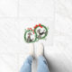 クリスマスのリースのかわいく、幸せなレトロのプードルは愛らしい休日の玄関マットを作ります。
