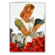 レトロのヴィンテージの家の缶詰になるかわいらしい女性空白のなカード