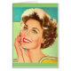 レトロの50年代の女性は彼女があってもいいと幸せな微笑して、同様に幸せの一見! カードの中: "その時見ますダウングレードとのあなたの前を"。