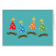 このおもしろいデザインはレトロなスタイルに口ひげとパーティー帽子のモチーフを持っている。カスタマイズクリックは、文字の追加や背景色の変更を行う。