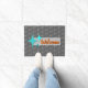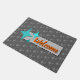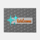 灰色の星模様の背景にレトロなアクアスターとオレンジ色の歓迎。