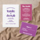 この結婚式招待状は、あなたの探し結婚ているお客様と簡単の編集可能なデザインに最適でもしすエレガント。ミニマルユニークリストのホワイトパープルのテンプレート招待。白い背景が特徴。紫色のはっきりしたgroovy 70s花嫁と花婿のファーストネームと編集可能な情報。ま手頃た、電子メールや文字で送信したいデジタル電子メール招待も含むもし。すべての情報は、のパーソナライズボタンクリックでカスタマイズ可能である。だから持って自分の招待状と興奮を作る婚約したように。
