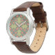 レトログリーンとオレンジ抽象芸術フローラルパターン 腕時計
