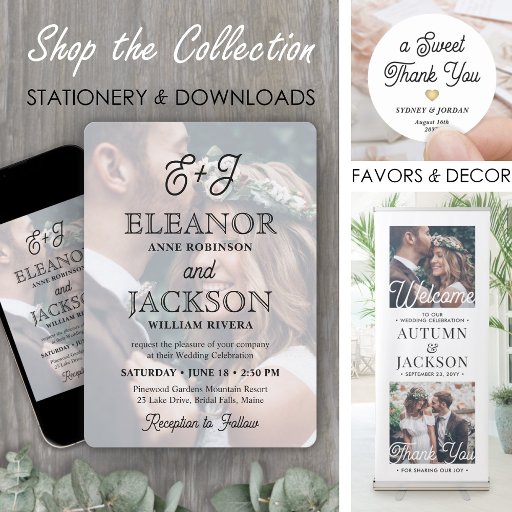 レトロスクリプトモノグラムエレガントミニマル結婚リスト スタンダードカクテルナプキン