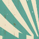 ティール(緑がかった色)とクリームカラーインスパイアパレットの中にを放はっきりした射したレトロなストライプデザインが印象的な作品。中央のスターバストパターンは、角度の線と幾何学的な形状によってアクセントされ、動きとエネルギーの感覚を作り出す。テクスチ擦り切れたャは古いポスターやサイネージを思い出すようなヴィンテージを追加する。デザイン中に散らばる小さな星や点は、ノスタルジックでダイナミックな美意識を高め、視覚的に魅力的な作品となっている。