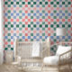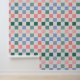 レトロチェッカーボードプレイド(ピンク、緑、青) 壁紙