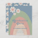 60祝年代70年代のレトロなヴィンテージパステルの色と緑のピンクのブルーのアーチの予算の卒業式パーティーの招待で卒業。テンプレートシンプルを使用するデイジーデザインと簡単を使用しカスタムて、この招待状は溝深いヒッピーのグラークールドパーティーに見える設定する。オリジナルのアートワークby artist Catherine Sweetman