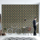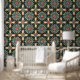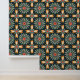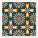 このレトロ鮮やかスタイルパタはっきりしたーンは、暗い背景に対してオ自然レンジ、グリーン、レッドの色調で幾何学的なフローラ形状を特徴としている。対称のデザイン与えはまだヴィンテージモダンで感じは、家庭のデコー、ファッション、または文房具の製品に最適。