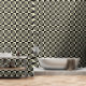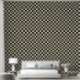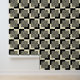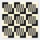 このミッドセンチュリーモダンパターンは黒と黄褐色の幾何学的な形状を特徴とする。