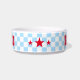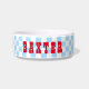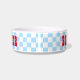 レトロブルー白市松模様に犬子猫の名前フード ボウル