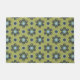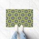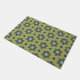 レトロブルー&ブラックデイジーオングリーンフローラルパターン ドアマット