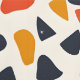 クリームの背景よくはしゃぐに不規則な小石のような形が散らばった抽象芸術パターンを特徴とする。このデザインは暖かいレトロな色のパレットを使用している深いネイビー、燃えたオレンジ、マスタードイエロー。形状は大きさや向きによって異なり、動きやエネルギー感を連想させるダイナミックで自然な配置を作り出す。型枠のシンプルさと色の組み合わはっきりしたせ与え、ヴィンテージのテキストとデザインを思い起こ感じす中世紀のパタモダンーン。