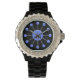 お尻1950のルックウォッチ顔は、黒い背景の12の銀色ロッドに取り付けられた12の光沢のあるプラスチックのペリウィンクル絵画ブルーのボールのオリジナルデジタルを特徴としている。イニシャルのトッピングとカスタム2つの文字フィールド。