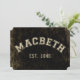シェイクスピア愛好家にとって、このデザインは「マクベス」(歴史的な王が王位に就いた年の1040年)という名前を持つレトロなヴィンテージの「アスレチック」スタイルレタリングで擦り切れた、質感が欠けている。