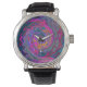 レトロマゼンタ、緑、オレンジの抽象芸術旋回 腕時計