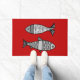 レトロモダン魚,深い赤と灰色/灰色 ドアマット