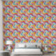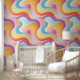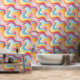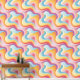 素晴らしいレトロなレインボー波パターン。1960年代または1970年代の客室の装飾に最適。ソフトボホピンクとレモン色。