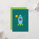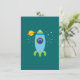 緑のアクセントと星を見るためのポートホールを備えたおもしろいレトロなブルーの宇宙船を搭載した可愛い漫画のロケットイラストレーション!この愛らしい漫画アートは天文学と宇宙に興味を持つ子供へ完璧な贈り物である!