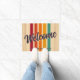 退屈忘れなウェルカムマット!あなたのドアステップは溝深いタイムワープを切望!排水溝は、このレトロな暴動のとあなたの名ストライプ前blazinでファブを受け入れはっきりした!写真"ようこそ"シン'のフォントのファンキーヴィンテージの振動の虹の爆発の上で。エントリーは一斉に「パーティーの名が!」とウインクでささやく。