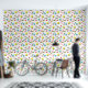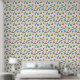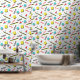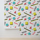 レトロ90年代の剥離と貼り付け90年代の黄色クール、ターコイズインスパイア、赤、白、黒の幾何学的な形状の明るいパターンの壁紙に波状の線、円、正方形など。リビング与え宇宙90sのパタパターン(の模様が)あるーンでピールとスティックの効果をプリントした壁紙とレトロなtouch。