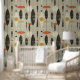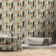 レトロ抽象芸術グレー幾何学的パターン壁紙は、グレー、黒、オレンジ、黄色と白の抽象芸術幾何学的パターンを特徴とする。家の装飾、壁のアクセントとトリートメント、オフィスの装飾とパーティー装飾に最適。Evco Studio www.zazzle.com/store/evcostudioによって作成
