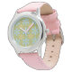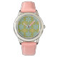 レトロ抽象芸術青と黄色の花オン緑 腕時計
